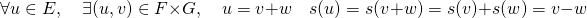\[ \forall u \in E, \quad \exists (u,v) \in F \times G, \quad u = v + w \quad s(u) = s(v + w) = s(v) + s(w) = v - w \]